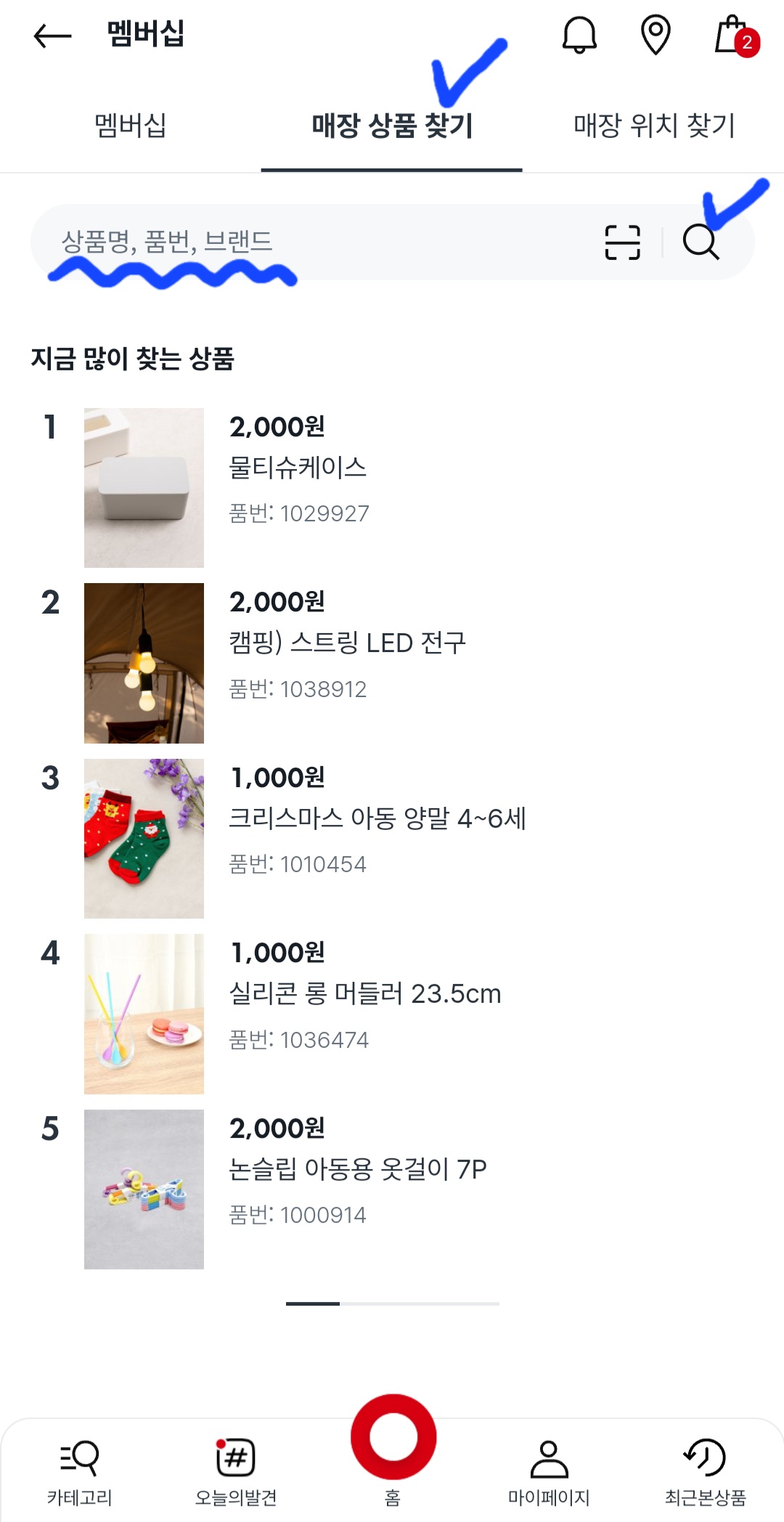 상품명 또는 품번 등으로 원하는 매장 상품 검색