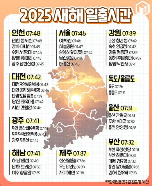 명소별 해돋이 시간 안내